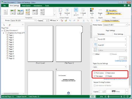 Select a paper source other than the inserter in [Paper Source]. When tab paper is fed from the inserter, chapter names cannot be printed on the index tabs.