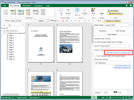 The [Detailed Settings for Headers/Footers (Print Pages)] dialog box is displayed.