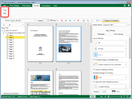 This operation can also be performed with the tool buttons on the toolbar. If tool buttons are not displayed on the toolbar of Desktop Editor, see the following to display them.
