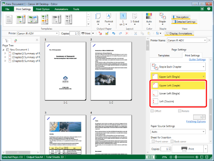 Select [Staple Each Chapter] in [Detailed Settings for Printing] on the [Print Settings] tab on the Details Window.
