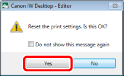 If the [Display confirmation message when resetting print settings] check box is selected, a confirmation message is displayed.