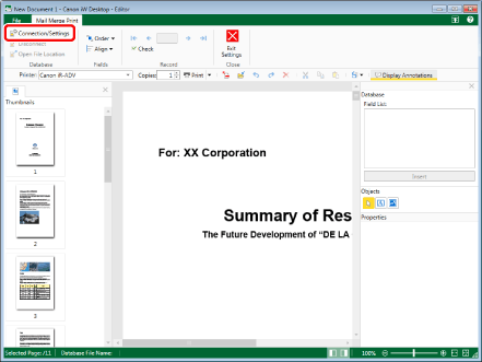 Specifying a Database after Starting the Mail Merge Print Settings Mode