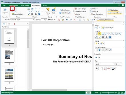 This operation can also be performed with the tool buttons on the toolbar. If tool buttons are not displayed on the toolbar of Desktop Editor, see the following to display them.