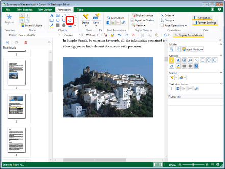 This operation can also be performed with the tool buttons on the toolbar. If tool buttons are not displayed on the toolbar of Desktop Editor, see the following to display them.