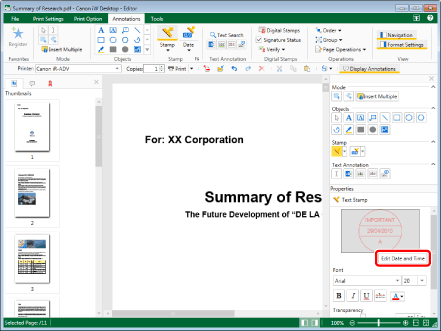 You cannot click [Edit Date and Time] for a text stamp that does not contain a date. For information on adding a date to a text stamp, see the following.