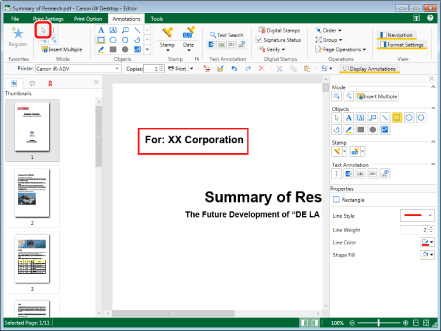 If you want to select all annotations in the page, perform one of the following operations while keeping the Work Window active.