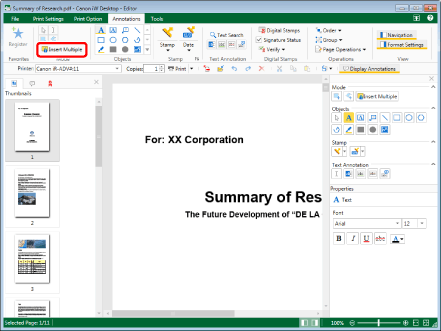 Even if the button is deselected, multiple insertions of annotations cannot be canceled. To cancel the insertion of multiple annotations, perform one of the following operations.
