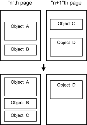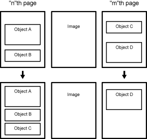 When the function of reducing margins is executed, margins are reduced and objects are moved upward on each page. In addition, if a space appears at the bottom of a page, objects from the following page are moved to that space