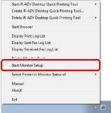 When Desktop Monitor Setup is running, do not change device settings from the printer properties screen of Windows. If you do so, it is necessary to restart Desktop Monitor Setup.