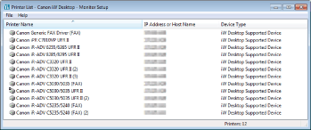 You can set device monitoring in the [imageRUNNER ADVANCE Desktop Quick Printing Tool Settings] dialog box of the Quick Printing Tool and click [OK] to automatically retrieve device information. For more information on the [imageRUNNER ADVANCE Desktop Quick Printing Tool Settings] dialog box, see the following.