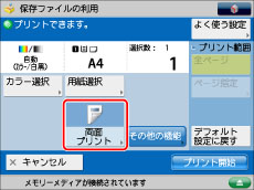 PDFファイルを選択した場合、用紙選択を「自動」に設定していて、オモテになるページとウラになるページのサイズが異なるときには、両面プリントはされずにそれぞれのサイズに合った用紙にプリントされます。両面にプリントするには、あらかじめプリントする用紙を選択してください。