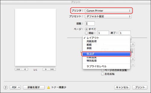 お使いのドライバーの種類とバージョン、およびアプリケーションソフトウェアによっては、画面が異なる場合があります。