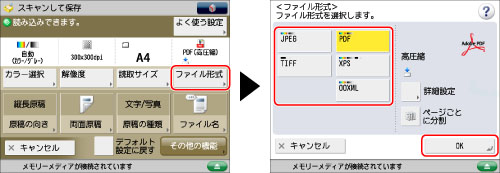 カラーモードにかかわらずXPS形式で保存されます。さらに追加設定を選択できます。