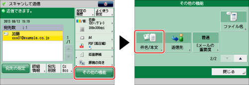 宛先を指定→[その他の機能]→[件名/本文]を押す
