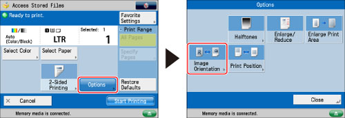 The machine automatically compares image height and width, and prints wide images horizontally.