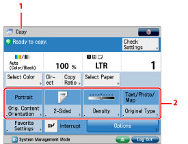 Only on the Copy screen, you can store [Options] and [Favorite Settings] shortcut buttons.