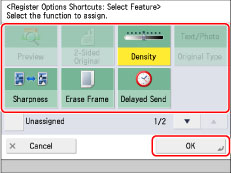 Select the [Options] mode you want to assign as a shortcut → press [OK].