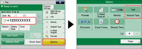 Specify the destination → press [Options] → [Original Type].
