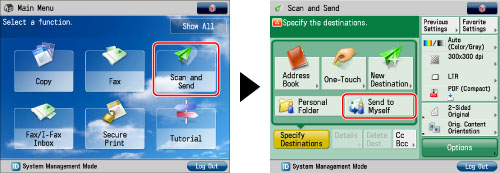 [Send to Myself] appears only if you register a user's e-mail address when you are using authentication by SSO-H.