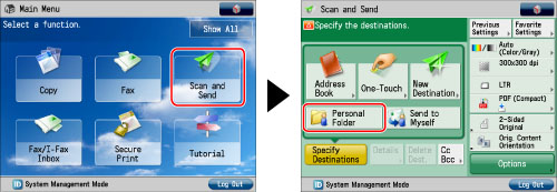 on the top right of the screen → [Register/Edit Info. for Each User] → [Personal Folder]The administrator can limit the destination for file transmission to each personal folder of the general user. (See "Restricting Destination for File Transmission.")