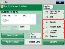 You can register settings in the shortcut keys displayed on the Fax screen. You can register up to four desired buttons from [Options].