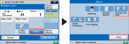 Press [Options] → [Enlarge Print Area] → [Close].