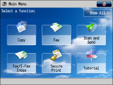 If you press [Show All] on the Main Menu screen, all buttons are displayed in the default order, even if you have altered the layout of the buttons. To return to the customized screen, press [Show All] again.