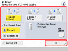 Set the desired copy modes → press [Check Settings].