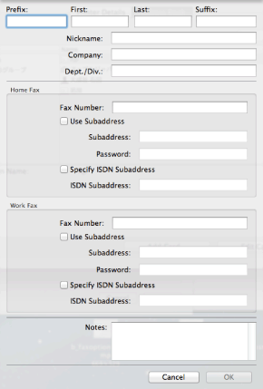 You must specify a name (either [First] or [Last]) and fax number (either [Home Fax] or [Work Fax]).