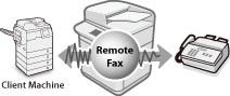 You can send/receive faxes using the remote fax function and a server machine, even if this machine is not connected to a telephone line. For details on using Remote Fax TX, see