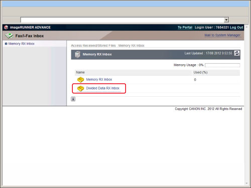 Click [Fax/I-Fax Inbox] → [Divided Data RX Inbox].