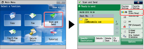 ![]() If the destination is an I-fax address or a group address that includes an I-fax address, the original is always scanned and sent in the Black-and-White mode.