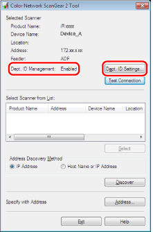 Before scanning, a dialog box for verifying authentication information may be displayed. Enter the department ID and PIN registered in the scanner to begin scanning.