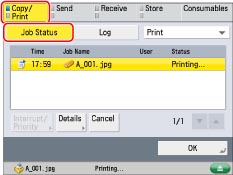 Press [Copy/Print] → [Job Status].