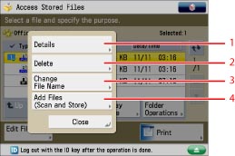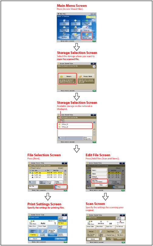 For the procedure regarding [Add Files (Scan and Store)] and instructions on operating the Scan screen, see "Adding a File (Scan and Store)" and "Flow of Scan and Store Operations."