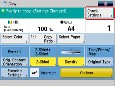Set the desired copy modes → press [Check Settings].