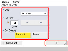 The appropriate dot size differs according to the environment or the content of the original. We recommend that you check documents embedded with a TL code to see whether you can correctly analyze the tracking information and whether the TL code restricts copying.