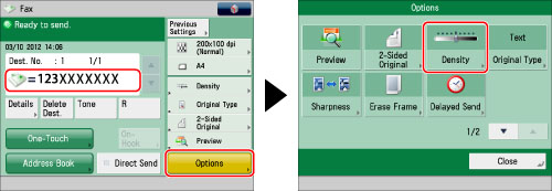 If you adjust the background density by pressing [Adjust] for <Background Density>, the [Auto] setting is cancelled. Similarly, if you press [Auto] while making manual adjustments in [Adjust], your adjustments are cancelled. The machine automatically adjusts the density to match the background.