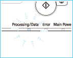 The Processing/Data indicator flashes or maintains a steady green light even when the machine enters the Sleep mode.