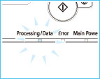 The Error indicator flashes a red light when either the amount of available memory is low, or paper needs to be loaded into a paper drawer.