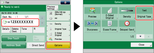 Specify the destination → press [Options] → [Original Type].