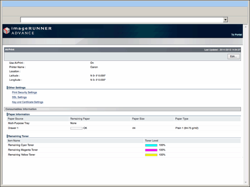 Enables you to check the values entered in the AirPrint settings, such as the name and location of the machine. You can click [Edit...] to change the settings.