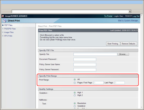 If you specify to print a PDF file by entering its URL, the next print job cannot be processed until the download of the PDF file is complete or until the browser has disconnected from the Web server.