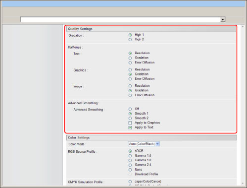 This setting allows you to define the profile that is appropriate for the data you are going to print. It is applied to all data in the print job, so make sure the selected profile is right for your job.