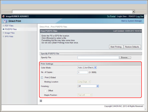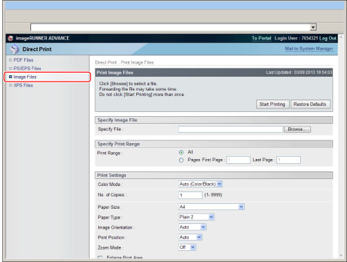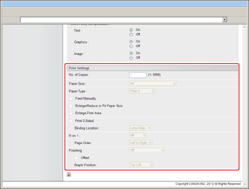 If [Top Left] is selected, the image is printed in the top left of the paper regardless of whether the print position of the image is specified.