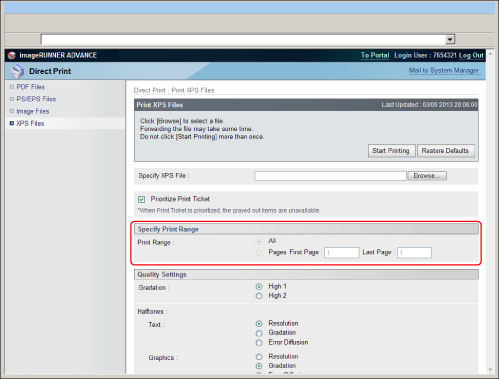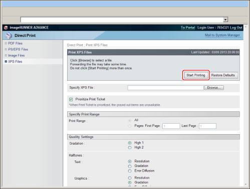 The Direct Print Kit (for PDF/XPS) or Direct Print Kit (for XPS) is required to print an XPS file without opening it.