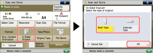 If you are scanning a vertically placed original as a two-sided document, select [Portrait] in [Orig. Content Orientation]. (See "Specifying the Orientation of the Original Image.")