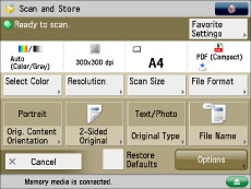 It is necessary to set <Use Scan Function> in [Use Scan/Print Function] to 'On' to store an original into memory media. (See "Memory Media Settings.")