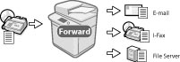 You can set to automatically forward received I-fax documents that match specified forwarding conditions to any destination using the desired send settings. You can forward received I-fax documents to another machine (relay function). You can also set automatic forwarding to activate at a specified time. Since received documents that do not match the forwarding conditions can also be forwarded to any desired destination, you can use this function to sort and deliver received I-fax documents to the appropriate destinations.