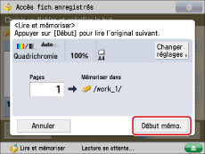 Si l'écran suivant s'affiche après la lecture du dernier lot d'originaux, appuyer sur [Début mémo.].